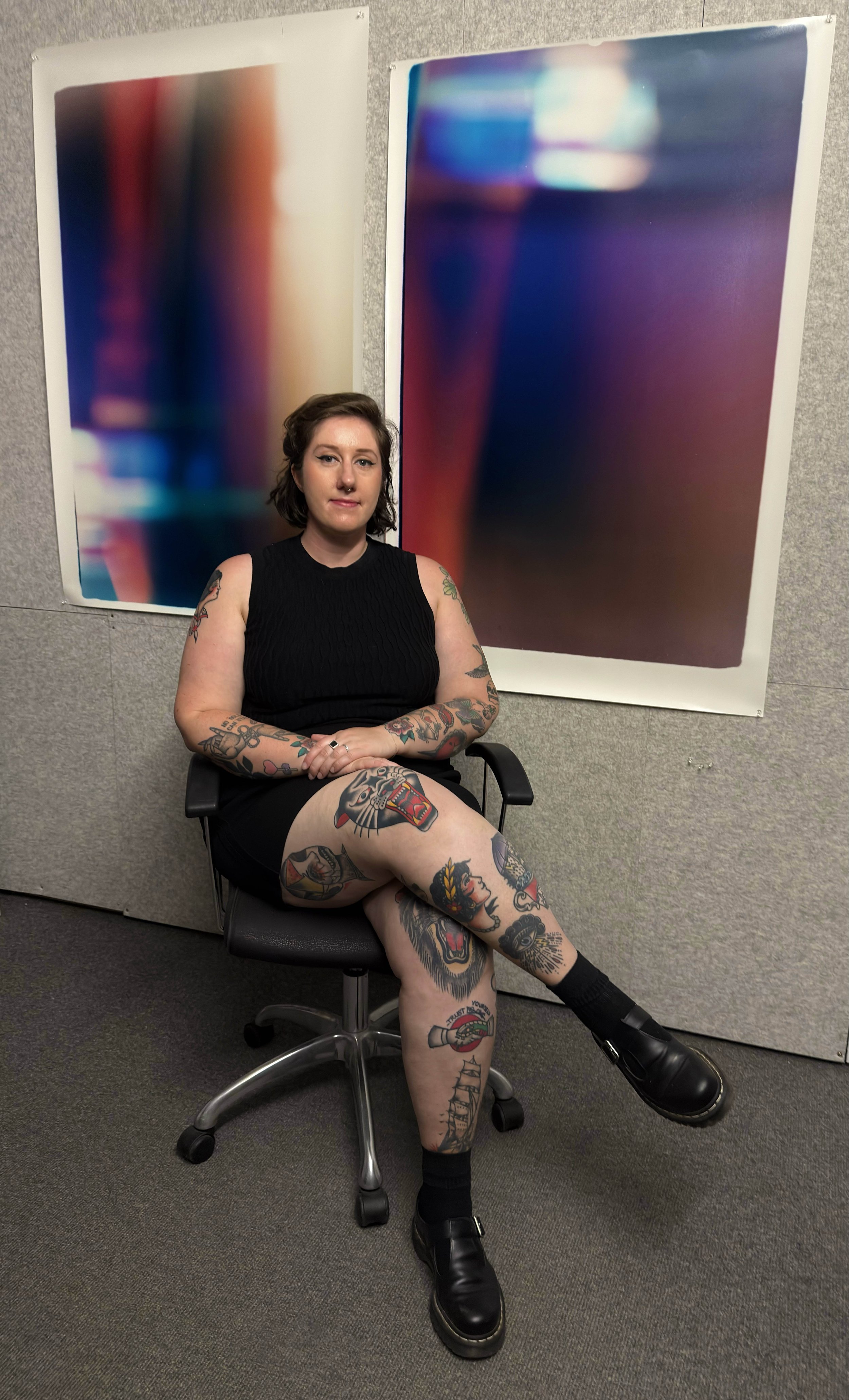 Alex makes large scale abstract prints by hand in the colour darkroom; her recent work is inspired by the tactile experience of heightened bodily awareness and sensory deprivation encountered during this unique process. Alex also employs projection and installation to expand the photograph beyond its two-dimensional form into phenomenological, bodily encounter, referencing the physical experience of analogue printing.